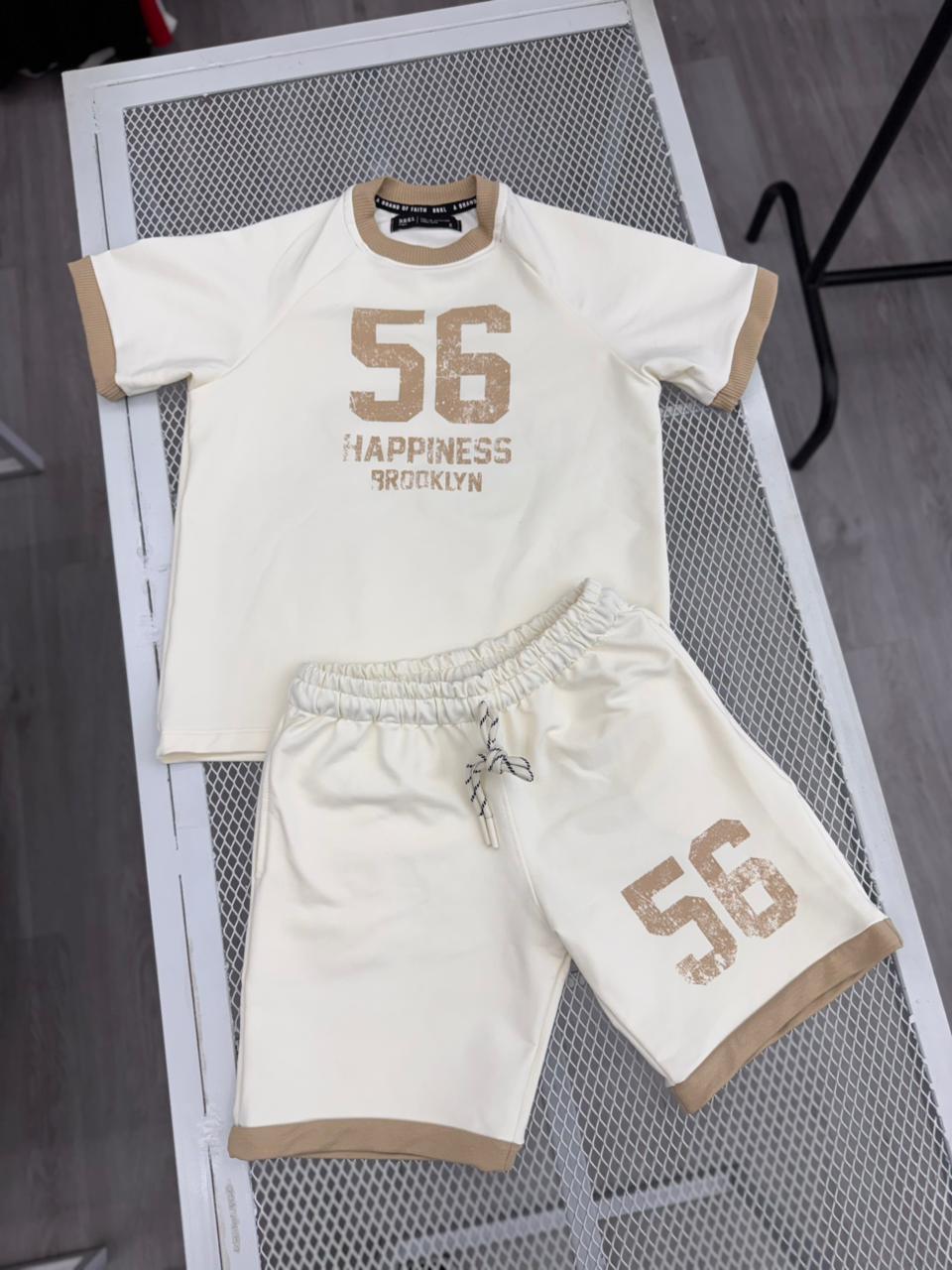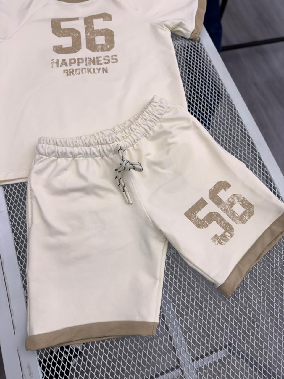 Diseño en tono marfil con detalles beige, con estampado “56 Happiness Brooklyn” que le da un aire urbano y deportivo.